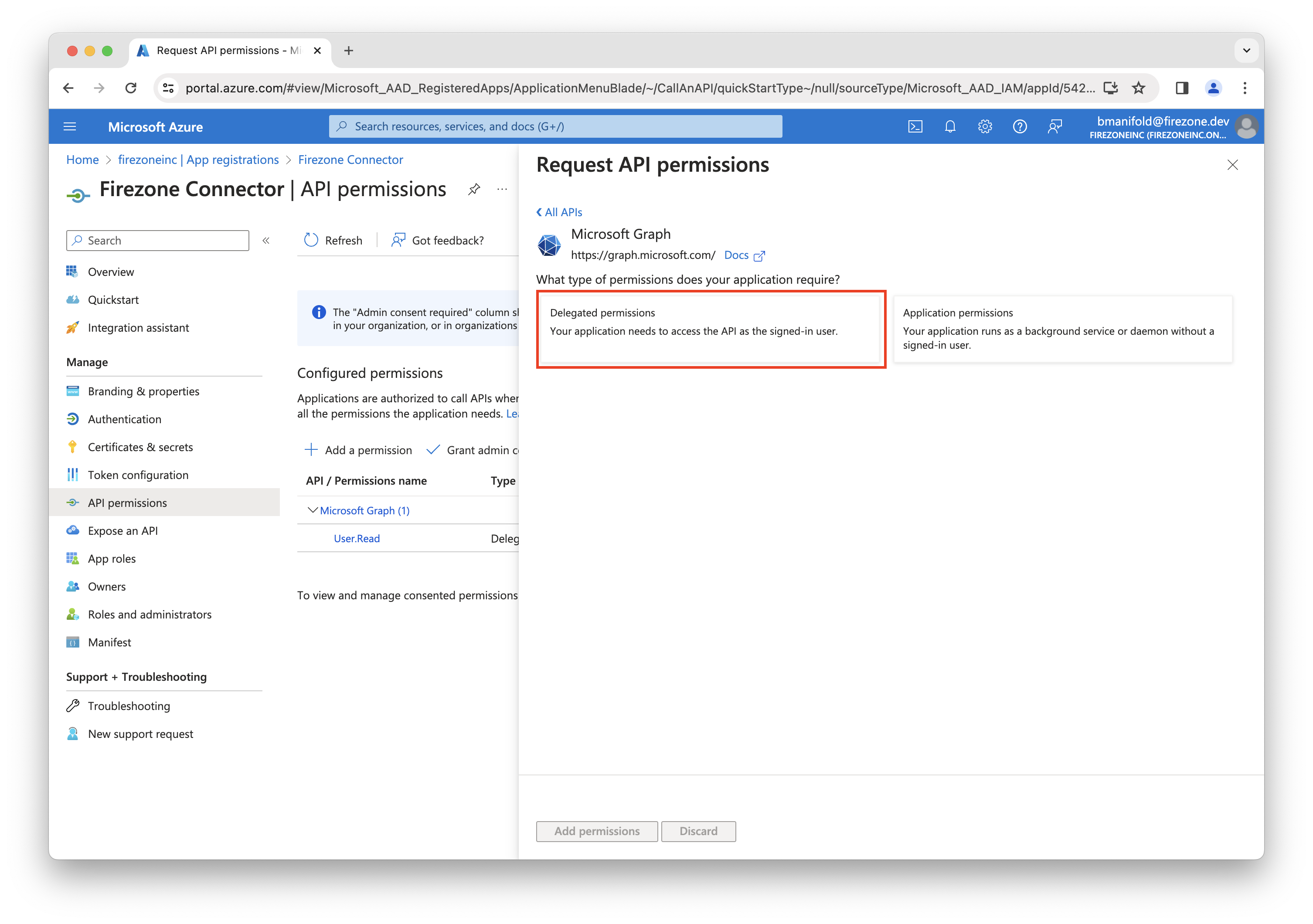 Select Delegated permissions.