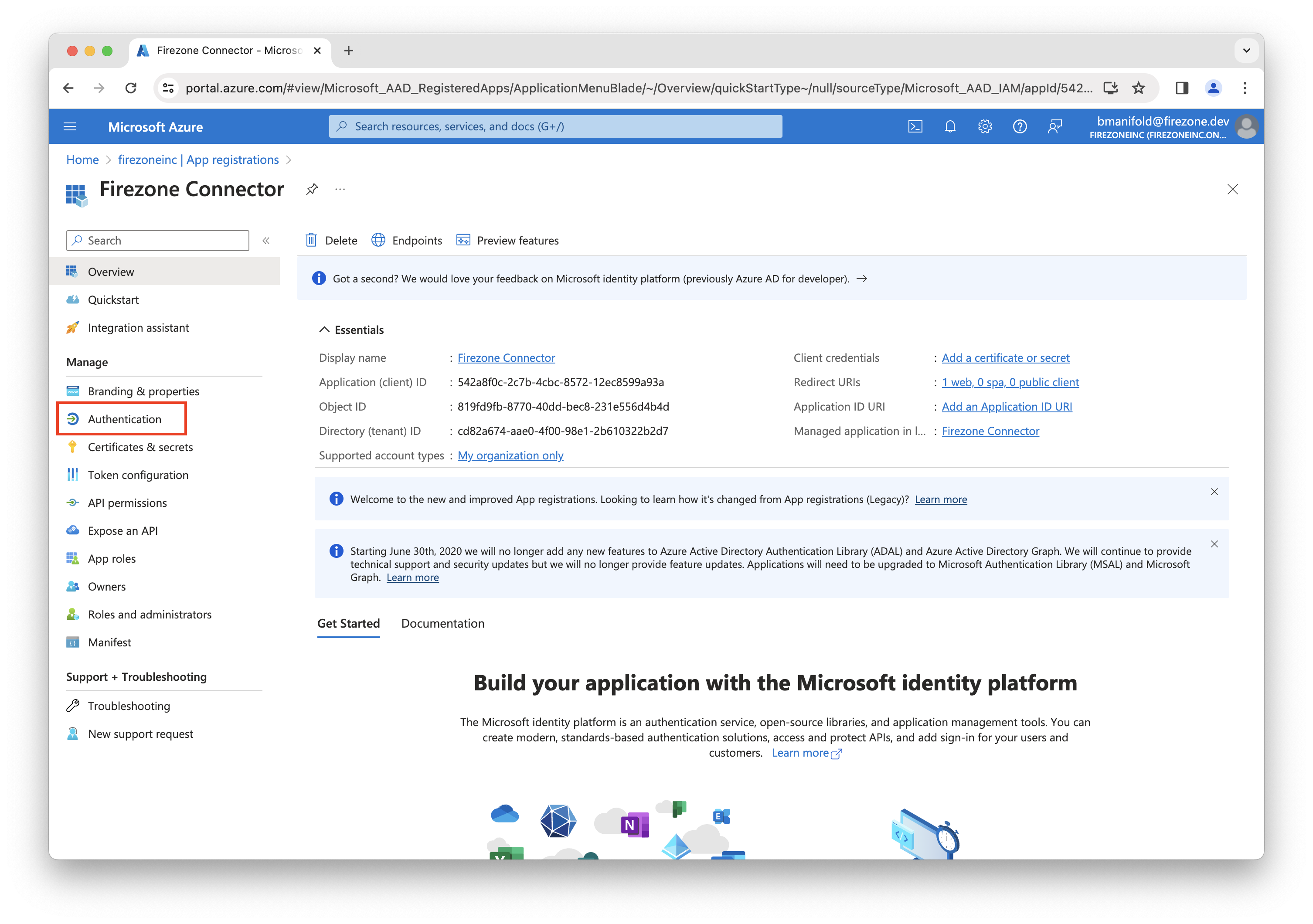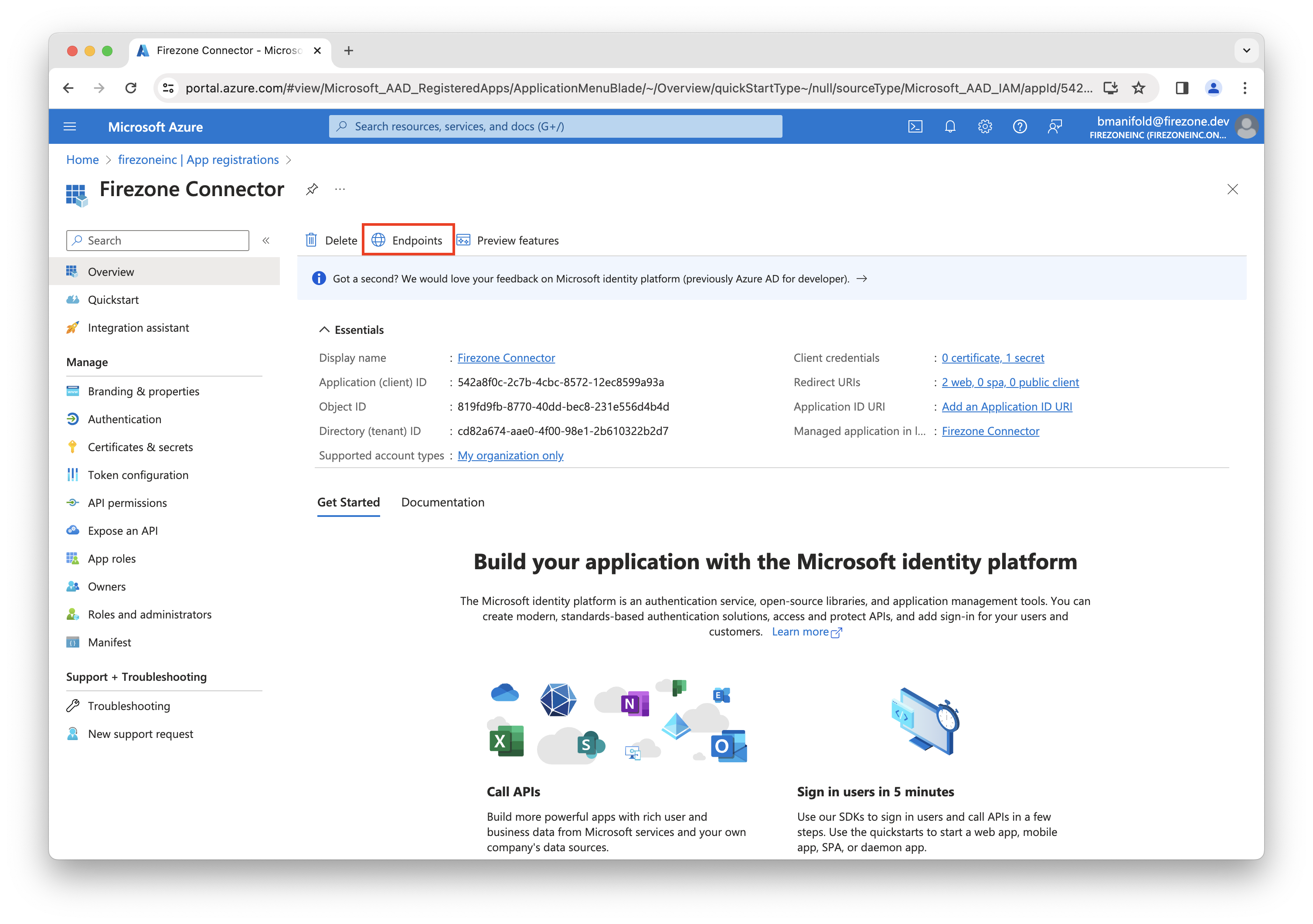 In the Firezone Connector app registration, click the Endpoints tab.
